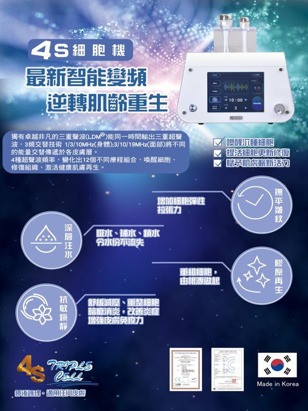 4種超聲波頻率,變化出12個不同療程組合,喚醒細胞、修復組織、激活健康肌膚再生